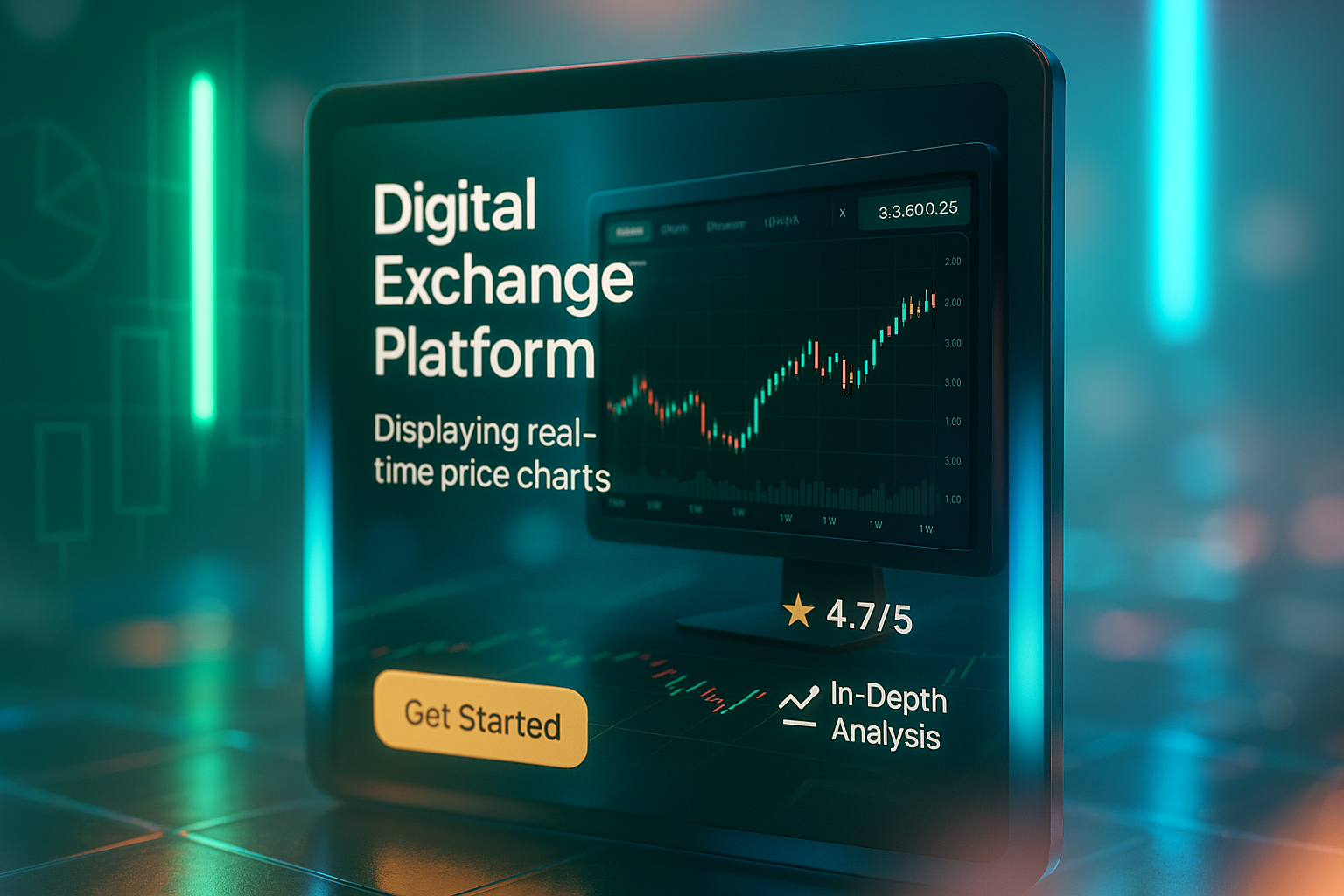 Digital Exchange Platform Promotional Graphic Featuring Real-Time Price Charts