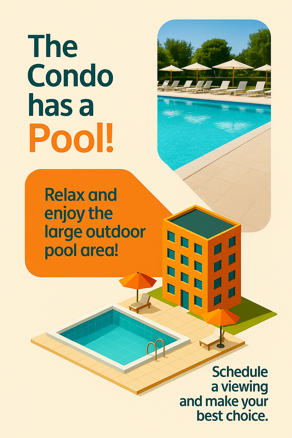 Real Estate Promotion Graphic Featuring a Condo Pool