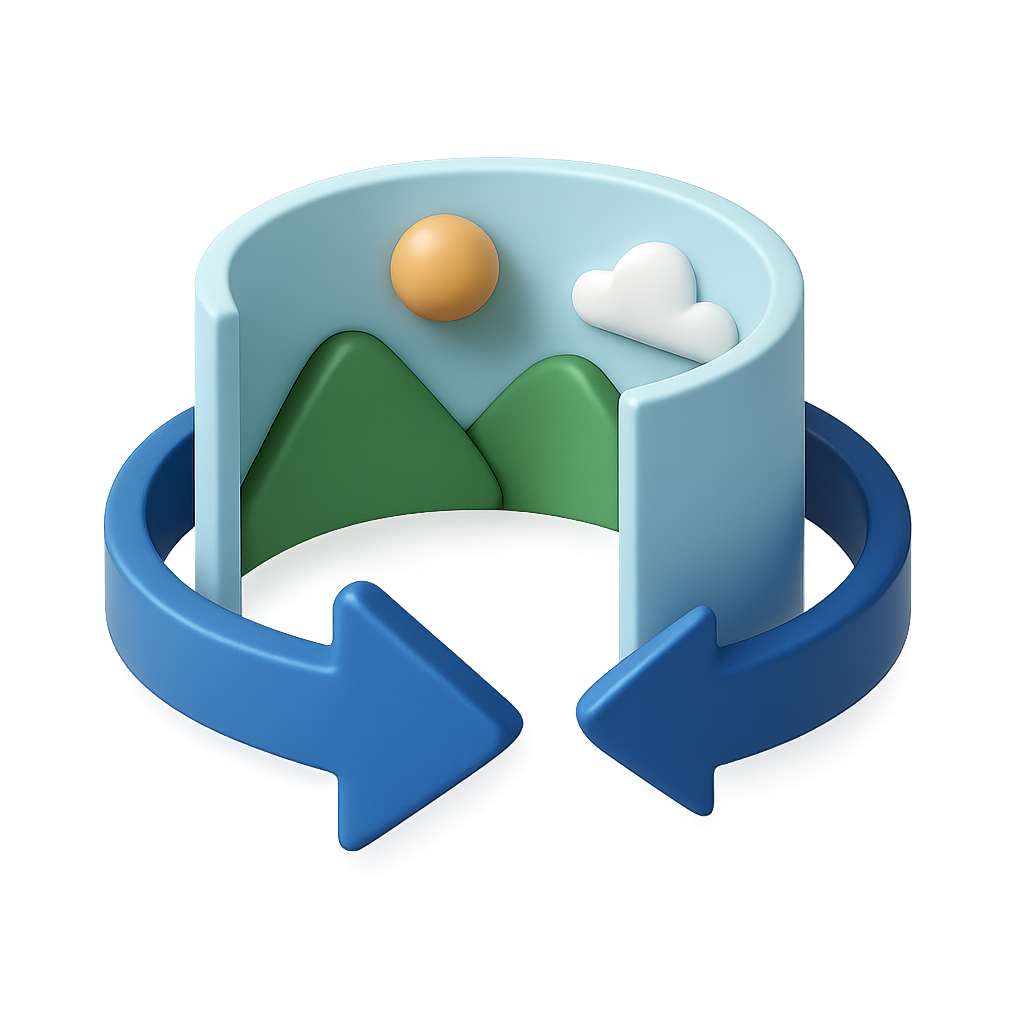 Colorful 3D Icon with Panoramic Elements and Arrows