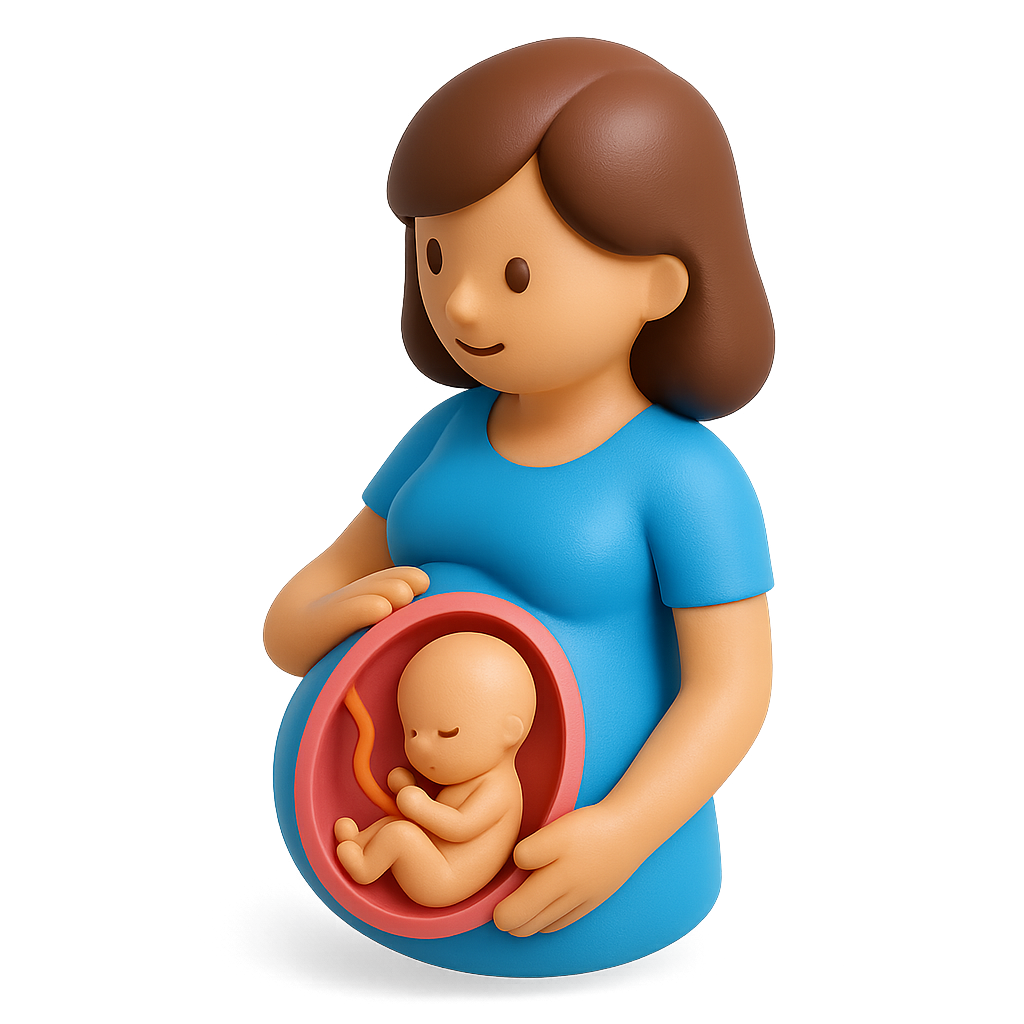 /Collection: /by davooda/Type: PNG/A 3D icon depicting an expecting mother holding a baby in a womb, shown from a three-quarter view. The design features a soft, colorful aesthetic with volumetric details.