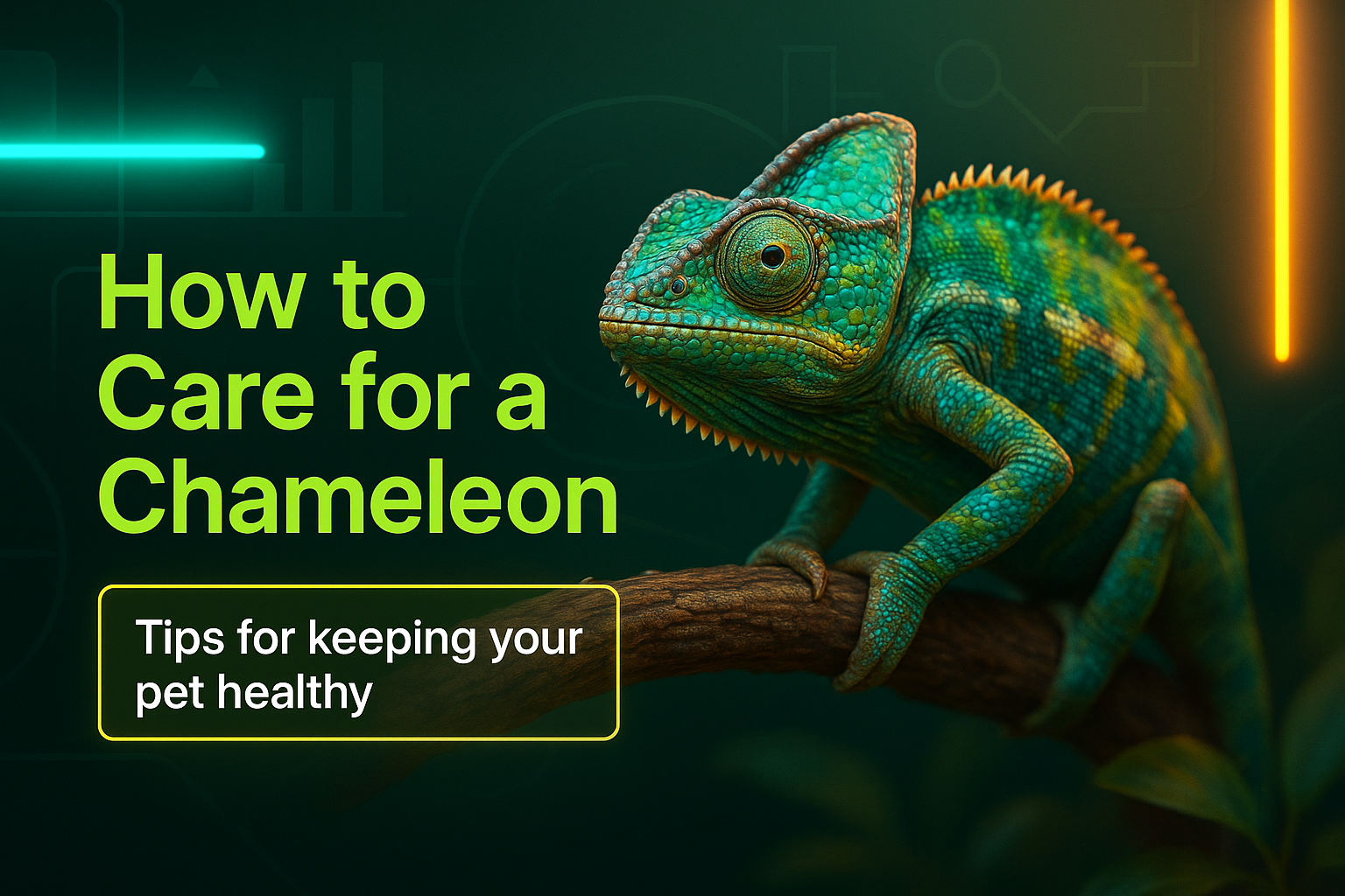 Engaging infographic featuring a chameleon with care tips, designed for pet owners. The vibrant colors and modern design elements enhance its appeal.