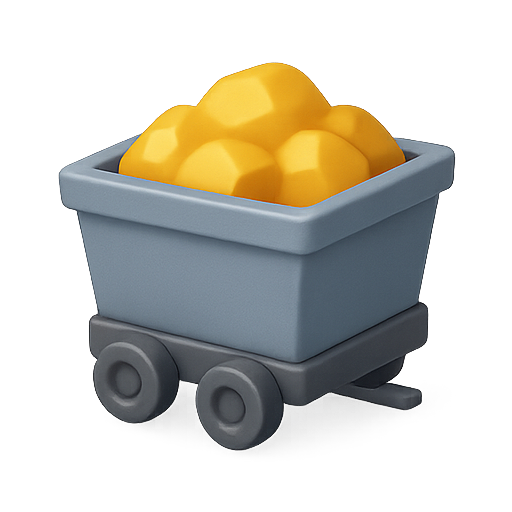 /Collection: /by davooda/Type: PNG/A stylized 3D graphic of a mine cart filled with gold nuggets, perfect for use in gaming, finance, or mining-related themes. The design features a clean and modern aesthetic.