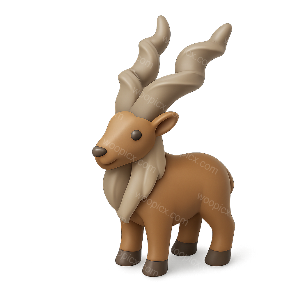 A charming 3D icon of a markhor featuring distinct spiral horns and a sleek design. The figure is rendered with a soft color palette and a transparent background, giving it a modern isometric feel.
