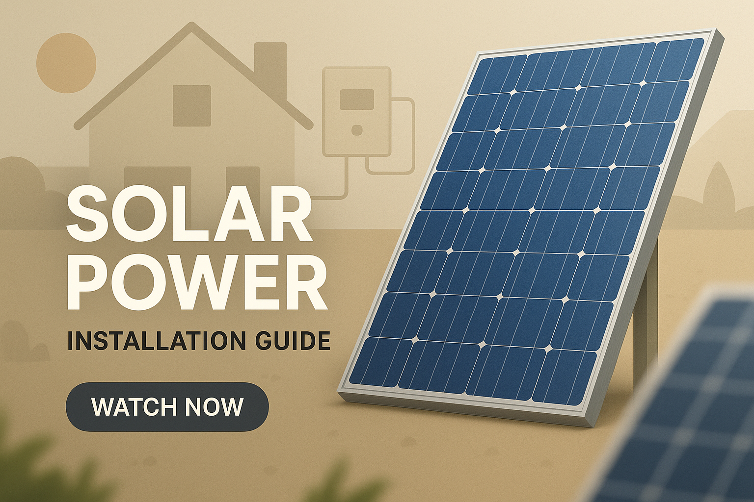/Collection: /by davooda/Type: PNG/A visually appealing graphic designed to promote a solar power installation guide. The modern design and warm color palette make it suitable for educational content about renewable energy.
