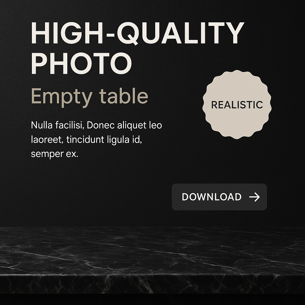A high-quality photo featuring a black marble table against a dark wall. The design emphasizes realism with a clear hierarchy of text elements and a cohesive aesthetic.