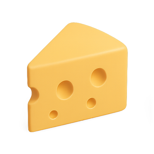 A stylized 3D rendering of a cheese slice featuring holes, ideal for food-related graphics or culinary themes. The vibrant yellow color adds a fun element, suitable for playful designs.