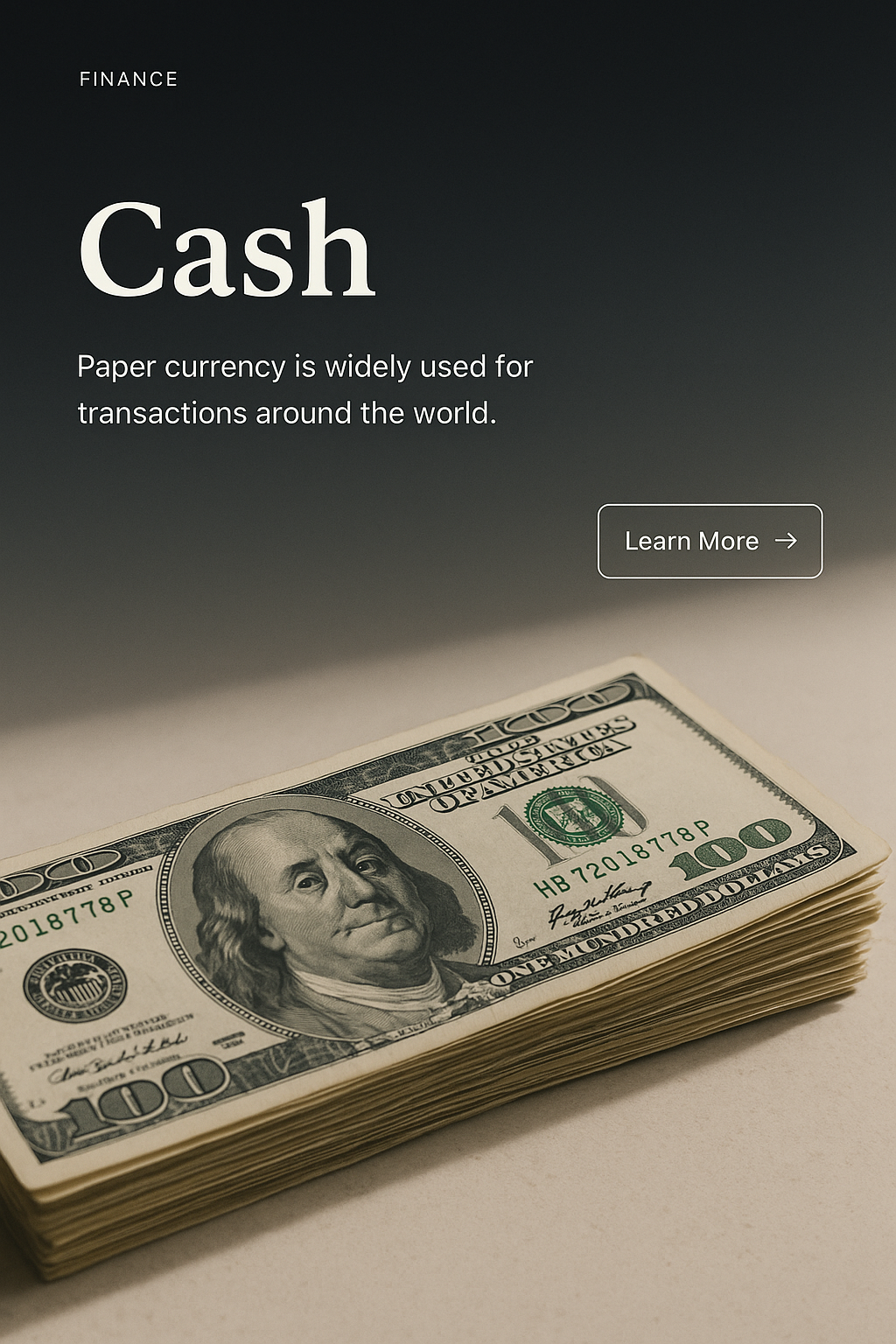 Stylish web design concept focusing on cash as a theme, featuring a layered composition with a gradient background and clear text elements.