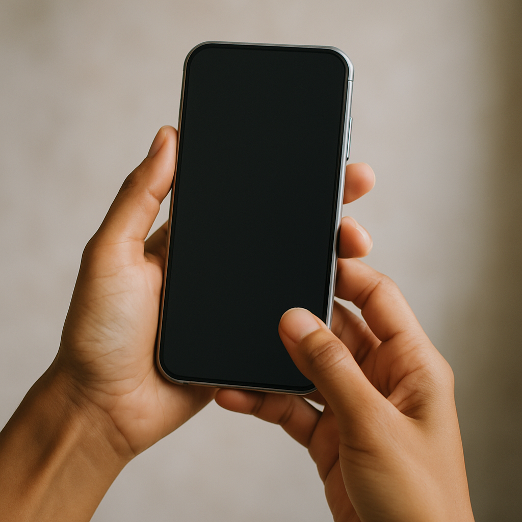 Smartphone with Blank Screen Held in Hands