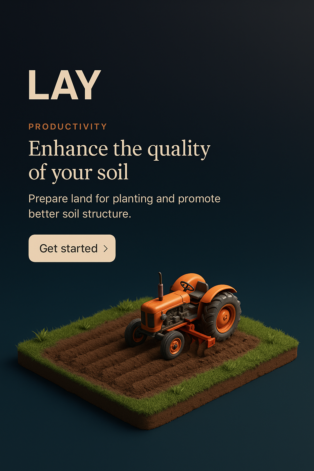 /Collection: /by davooda/Type: PNG/A visually appealing 3D scene featuring a tractor on soil with grass. The background is dark with a smooth gradient, and text elements are clearly presented.