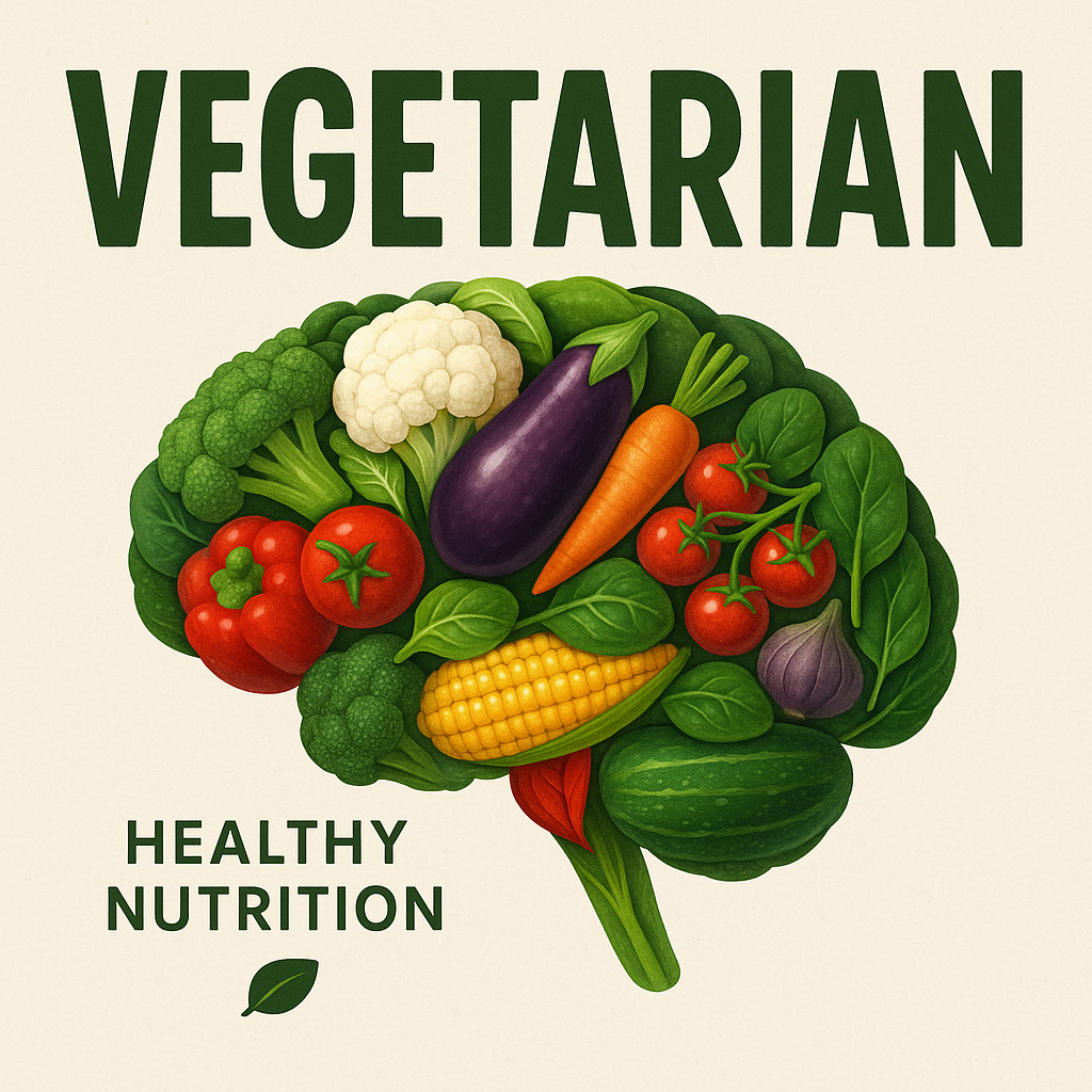 Colorful Vegetarian Nutrition Illustration with Brain Concept