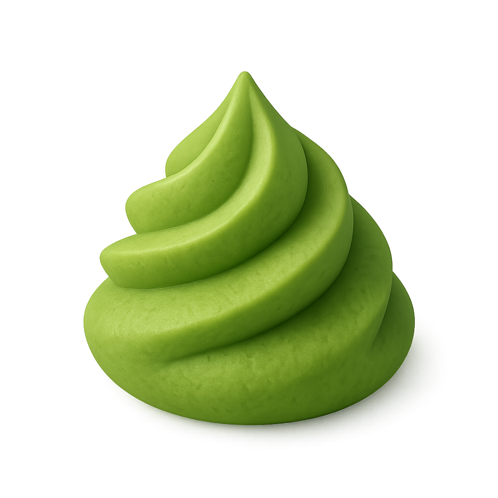 A stylized 3D representation of wasabi, featuring a smooth, swirled design with a vibrant green color. The icon showcases a three-quarter view against a transparent background, emphasizing its volumetric shape.