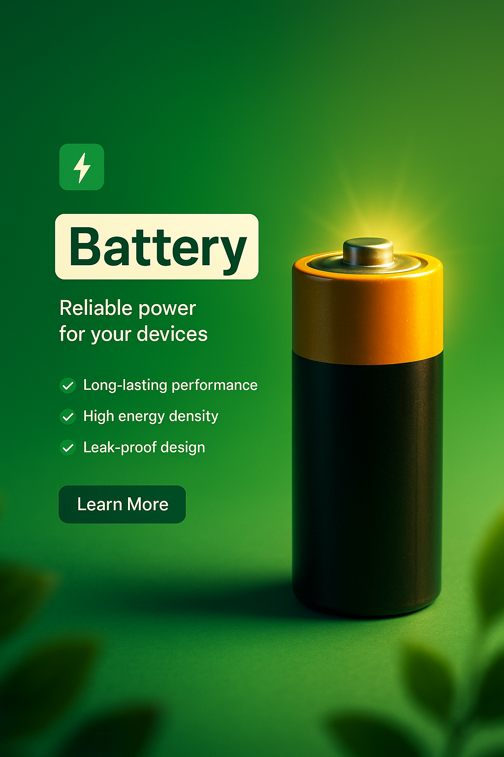 A visually appealing image of a battery, showcasing its features. The design uses vibrant colors and soft lighting, suitable for advertising and marketing energy-related products.