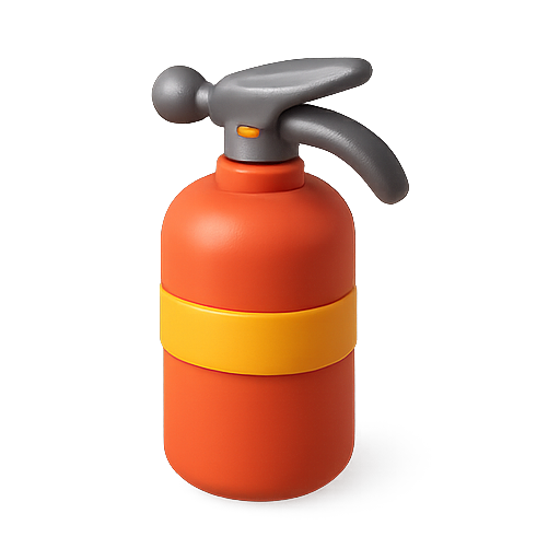 A colorful 3D rendering of a fire extinguisher, designed with a modern and playful aesthetic. This image is suitable for educational or safety-related content.