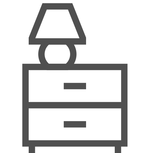 outline simple icon: bedroom, drawer, furniture, lamp, nightstand