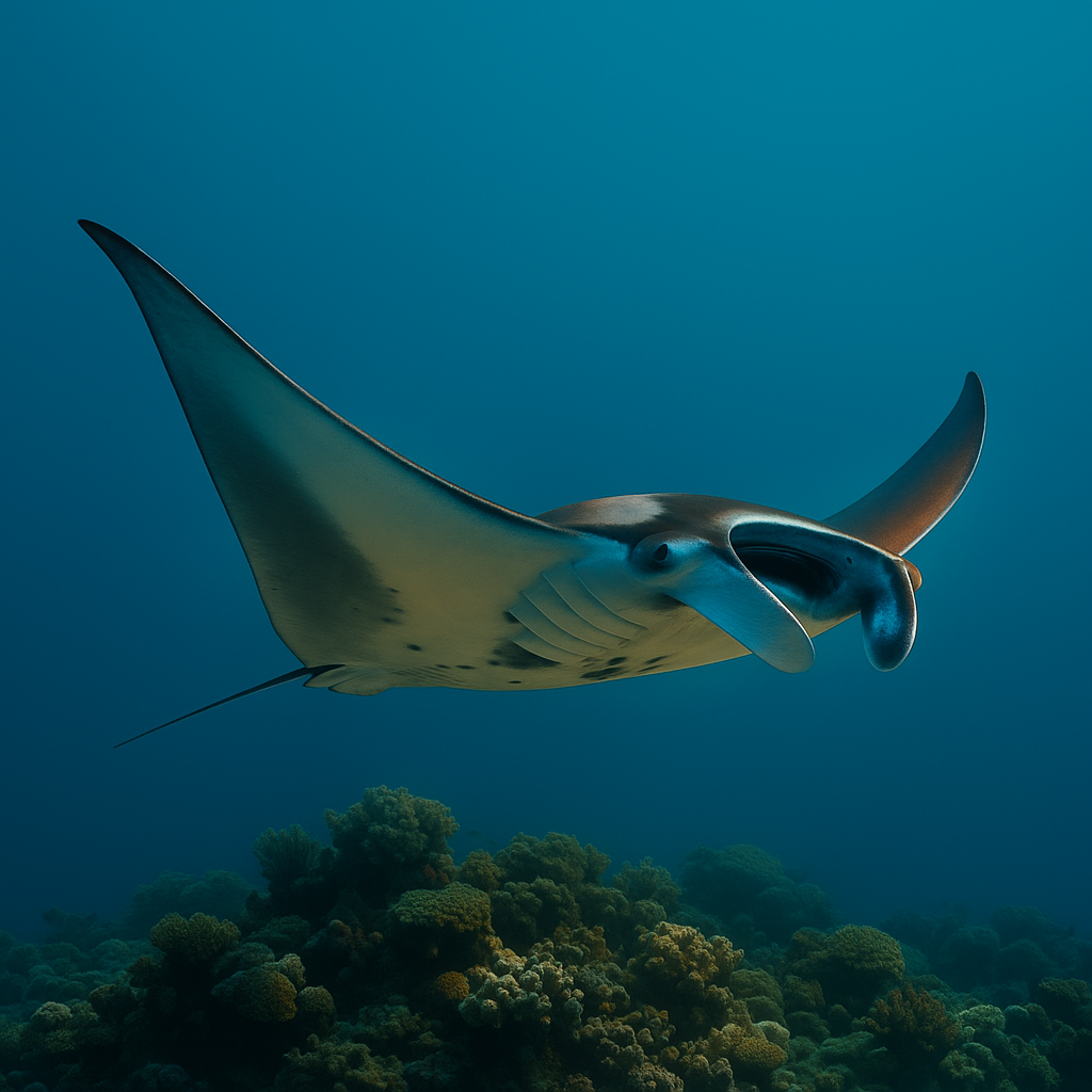 Manta Ray Gliding Over a Vibrant Reef Environment