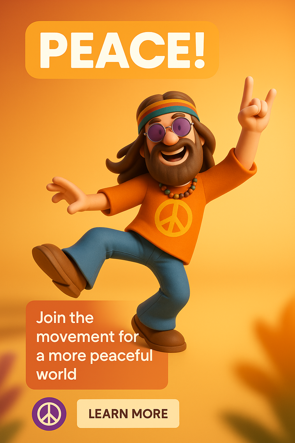 A colorful digital illustration featuring a character promoting peace, ideal for social media engagement and awareness campaigns.