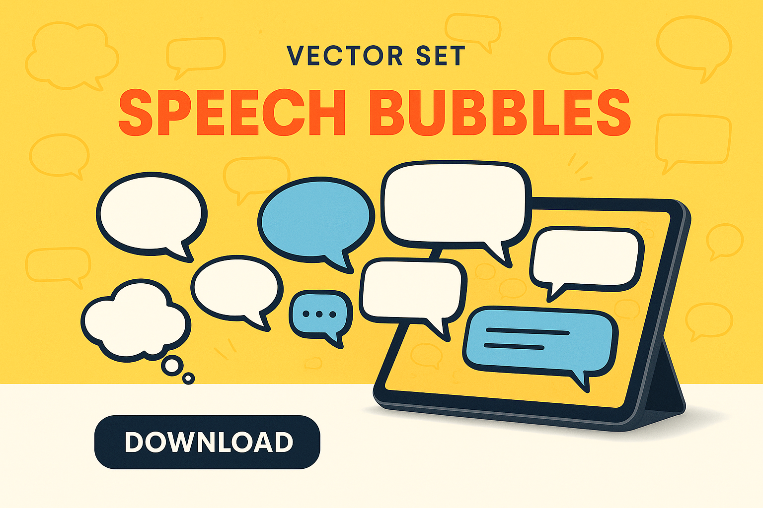 Modern Comics Chat Interface with Speech Bubbles and Tablet