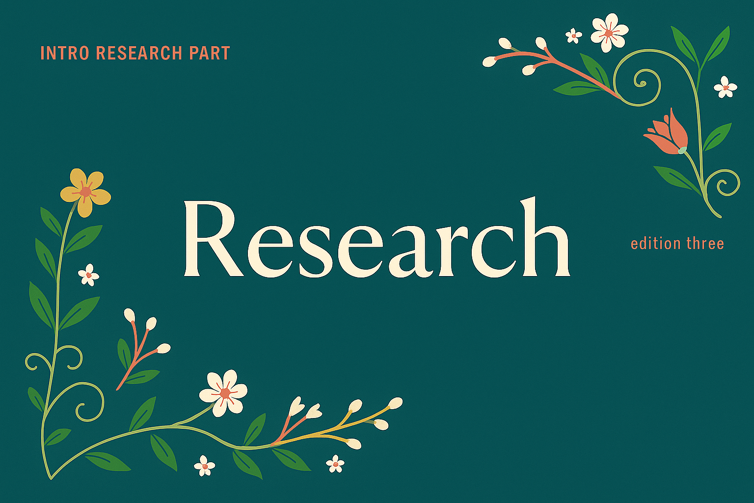 /Collection: /by davooda/Type: PNG/A visually appealing design featuring intricate floral patterns in vibrant colors surrounding the word 'Research' in an elegant font. The background is a rich teal, enhancing the overall aesthetic.