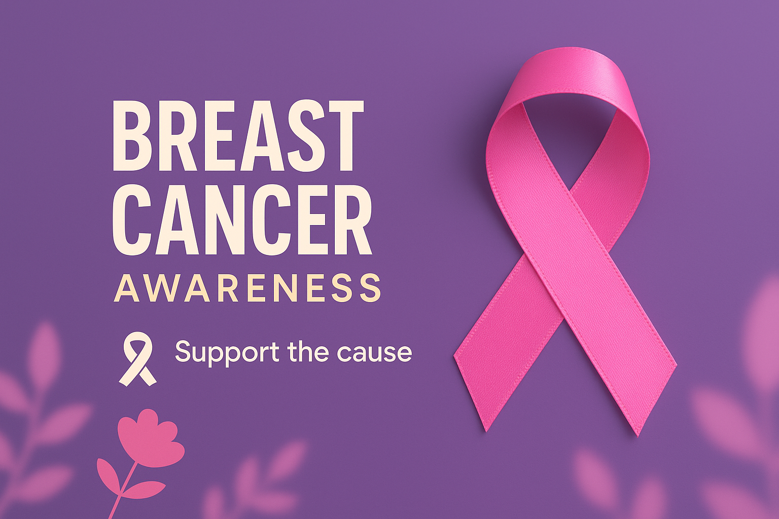 Breast Cancer Awareness Promotional Graphic with Pink Ribbon