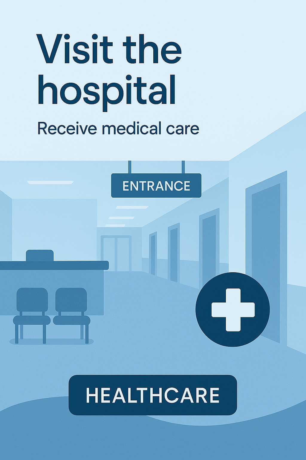 Illustration depicting a hospital interior with signage, ideal for healthcare promotional materials or informational content.