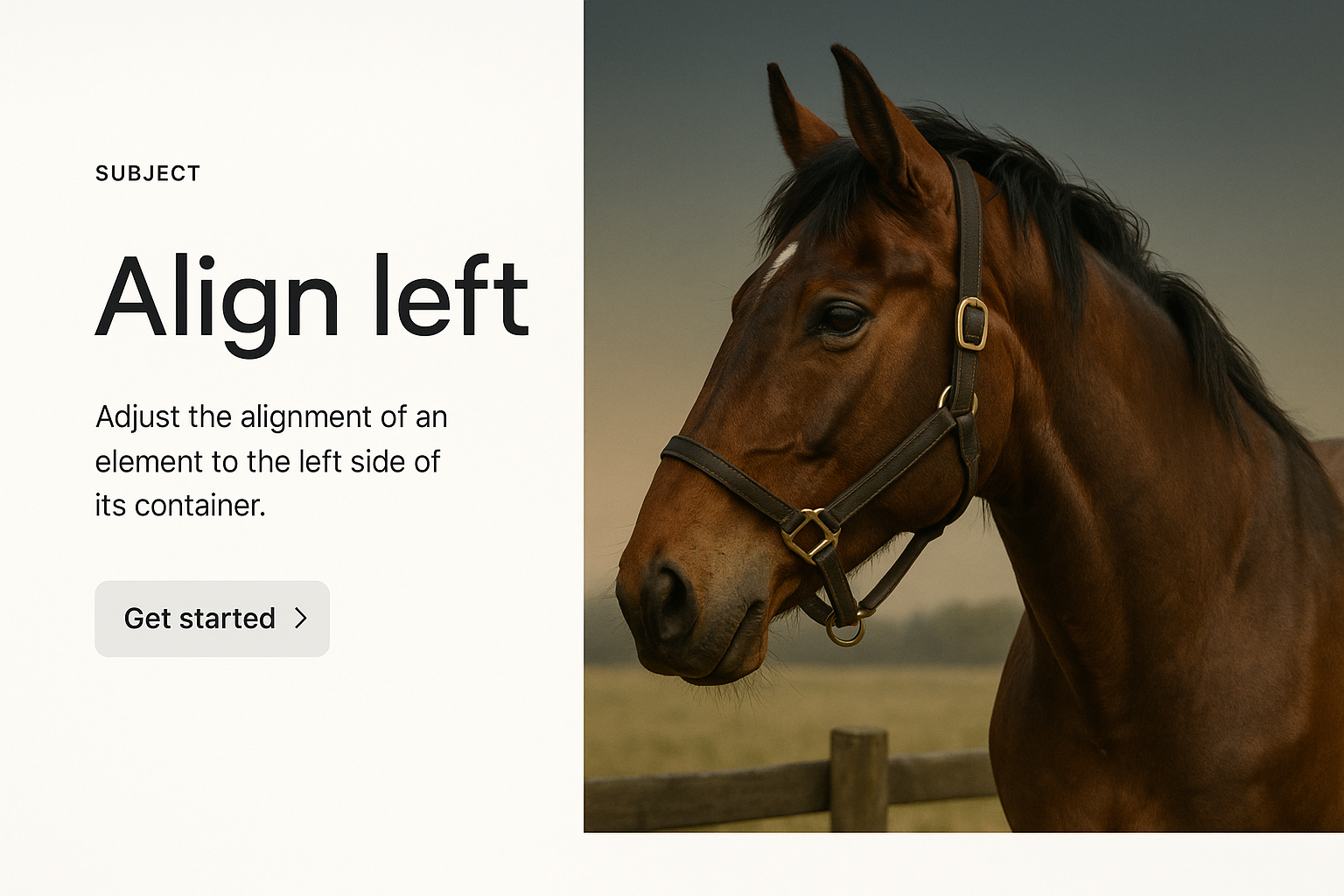 A stylish web page design featuring a realistic horse image. The layout includes a clear subject title, concise text, and an action button for user interaction.
