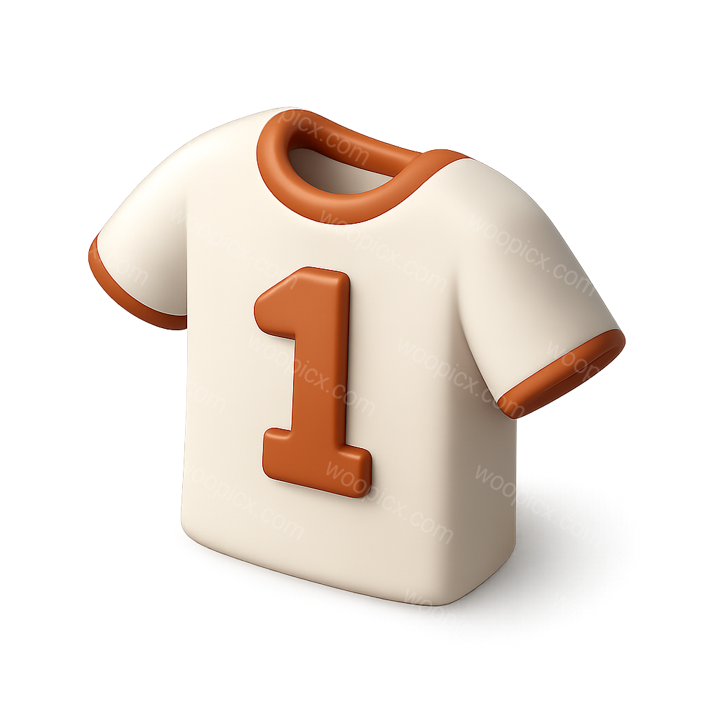 A visually appealing 3D icon of a t-shirt in a three-quarter view, featuring a bold number one, designed with a smooth, volumetric style on a transparent background.