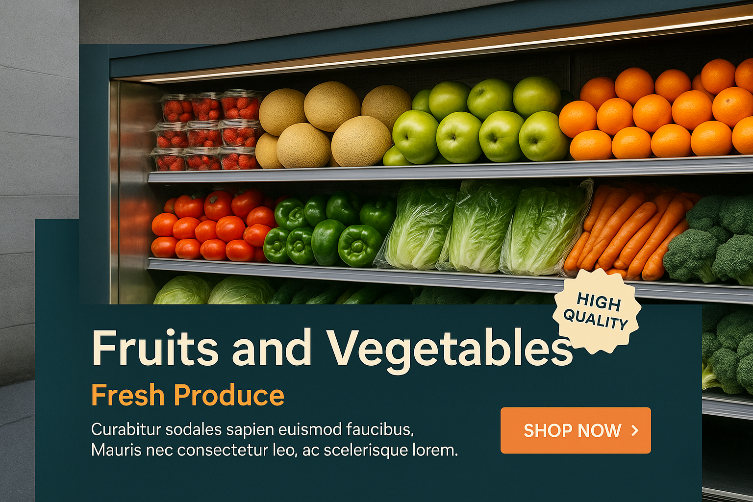 Realistic Supermarket Display of Fresh Fruits and Vegetables