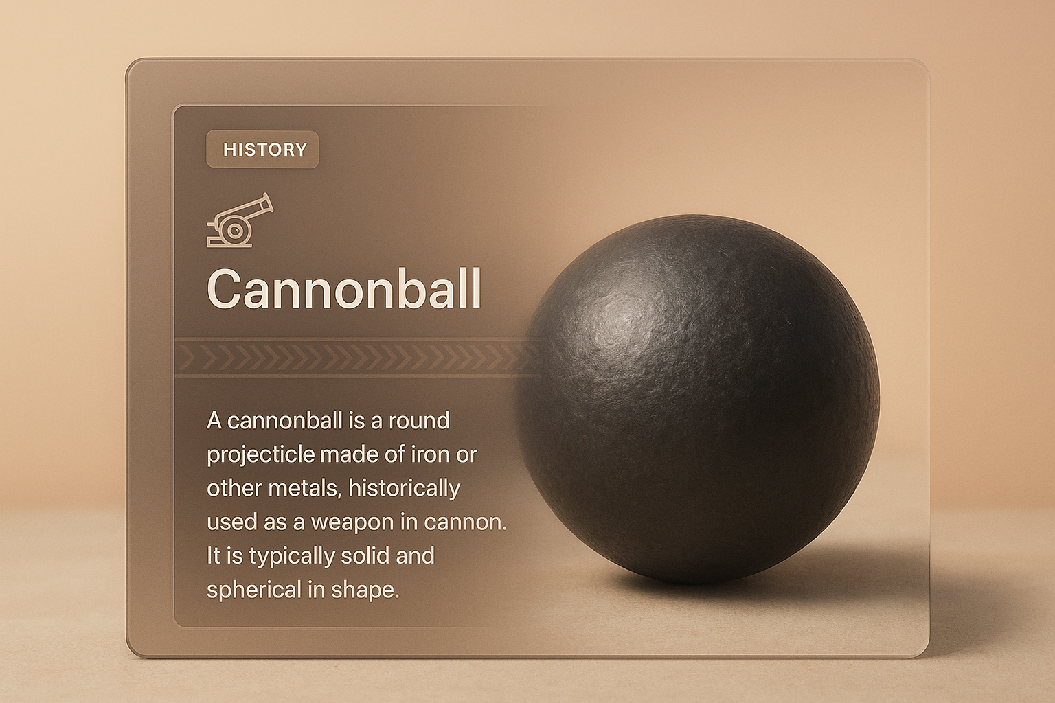 /Collection: /by davooda/Type: PNG/This image showcases a 3D cannonball set against a stylish background. It features an informative block with a title, icon, and text, all seamlessly integrated into the design.