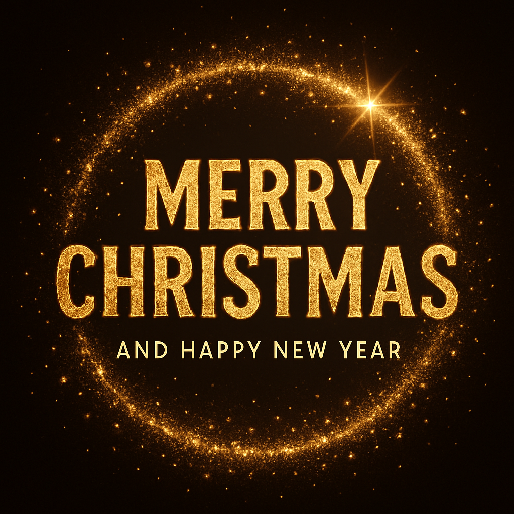 /Collection: /by davooda/Type: PNG/A vibrant holiday greeting card featuring golden text on a dark background, perfect for Christmas and New Year celebrations, suitable for digital and print use.