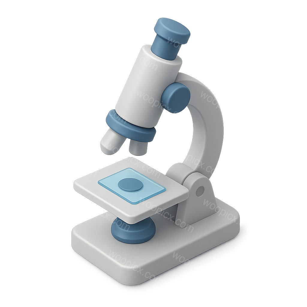 /Premium/Collection: /by davooda/Type: PNG/A stylized 3D microscope icon featuring a slide on the stage. The design showcases a three-quarter view with a modern, isometric feel and a transparent background.