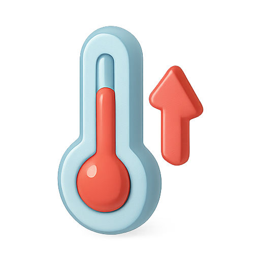 /Collection: /by davooda/Type: PNG/A modern, stylized icon of a thermometer with a rising temperature indicator, ideal for health, weather, or educational content. The soft color palette and 3D effect give it a friendly and approachable look.