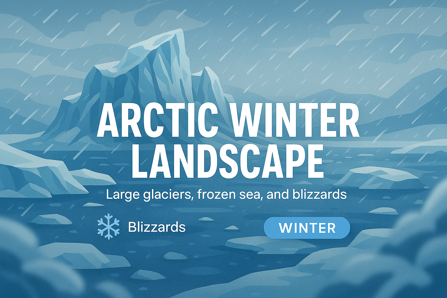 Illustrative Arctic Winter Landscape with Glaciers and Blizzards