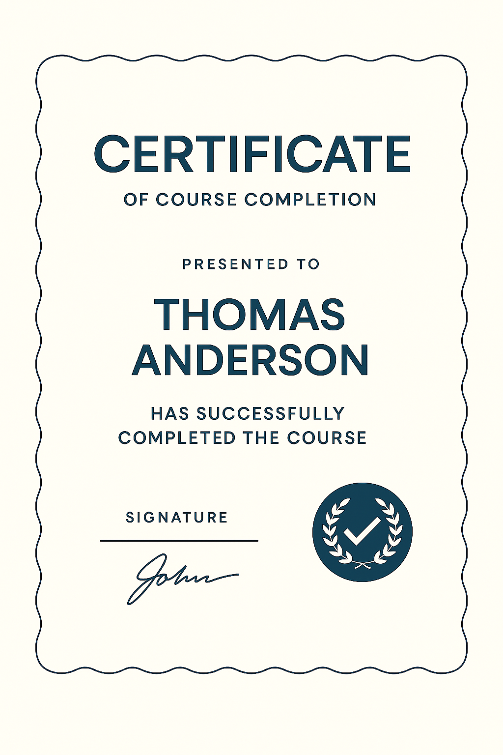 Elegant certificate design featuring a clean layout, suitable for recognizing course completions. Ideal for educational institutions or online courses.