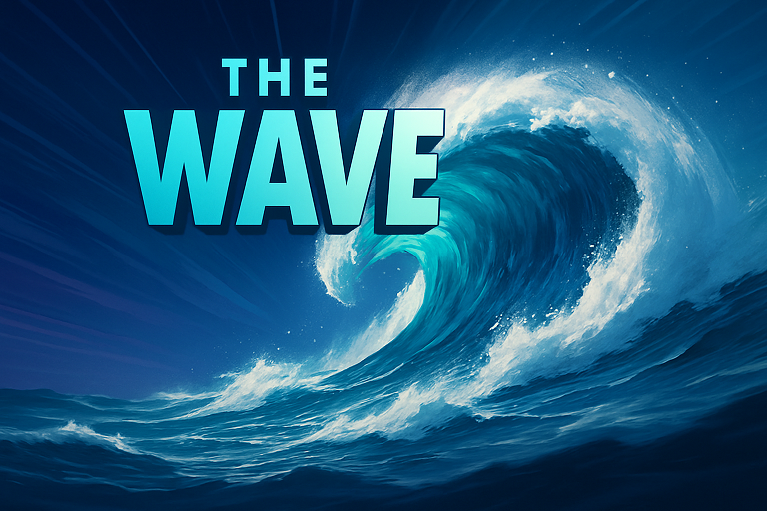 A striking illustration of a wave, featuring bold typography. The wave is depicted in vibrant colors, with dynamic lines radiating from the center, enhancing the sense of movement.