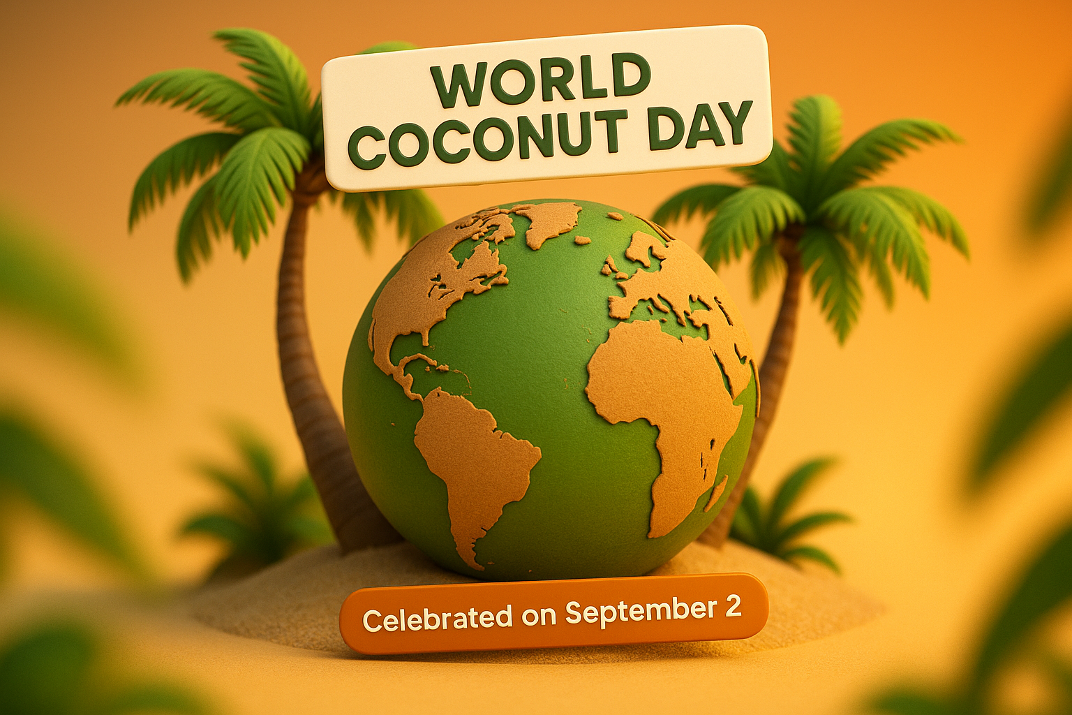 Celebratory Graphic for World Coconut Day with Earth and Palm Trees