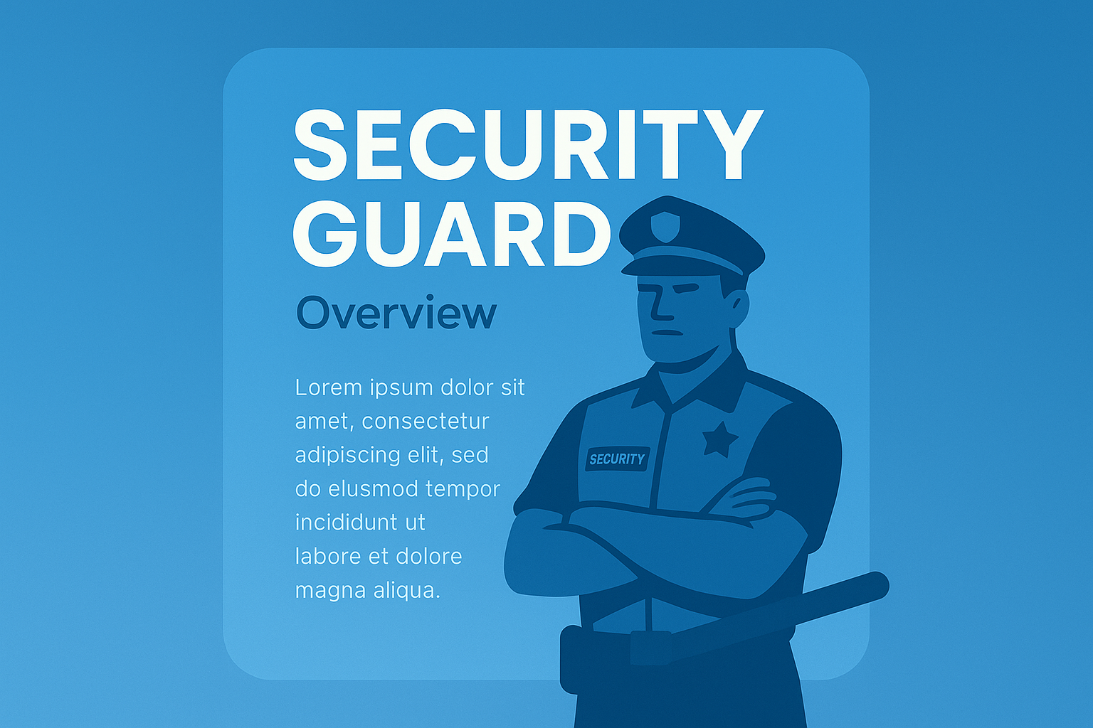 /Collection: /by davooda/Type: PNG/An illustration of a security guard in a blue gradient background, featuring a clear hierarchy of text elements and a balanced composition. The design is professional yet engaging.