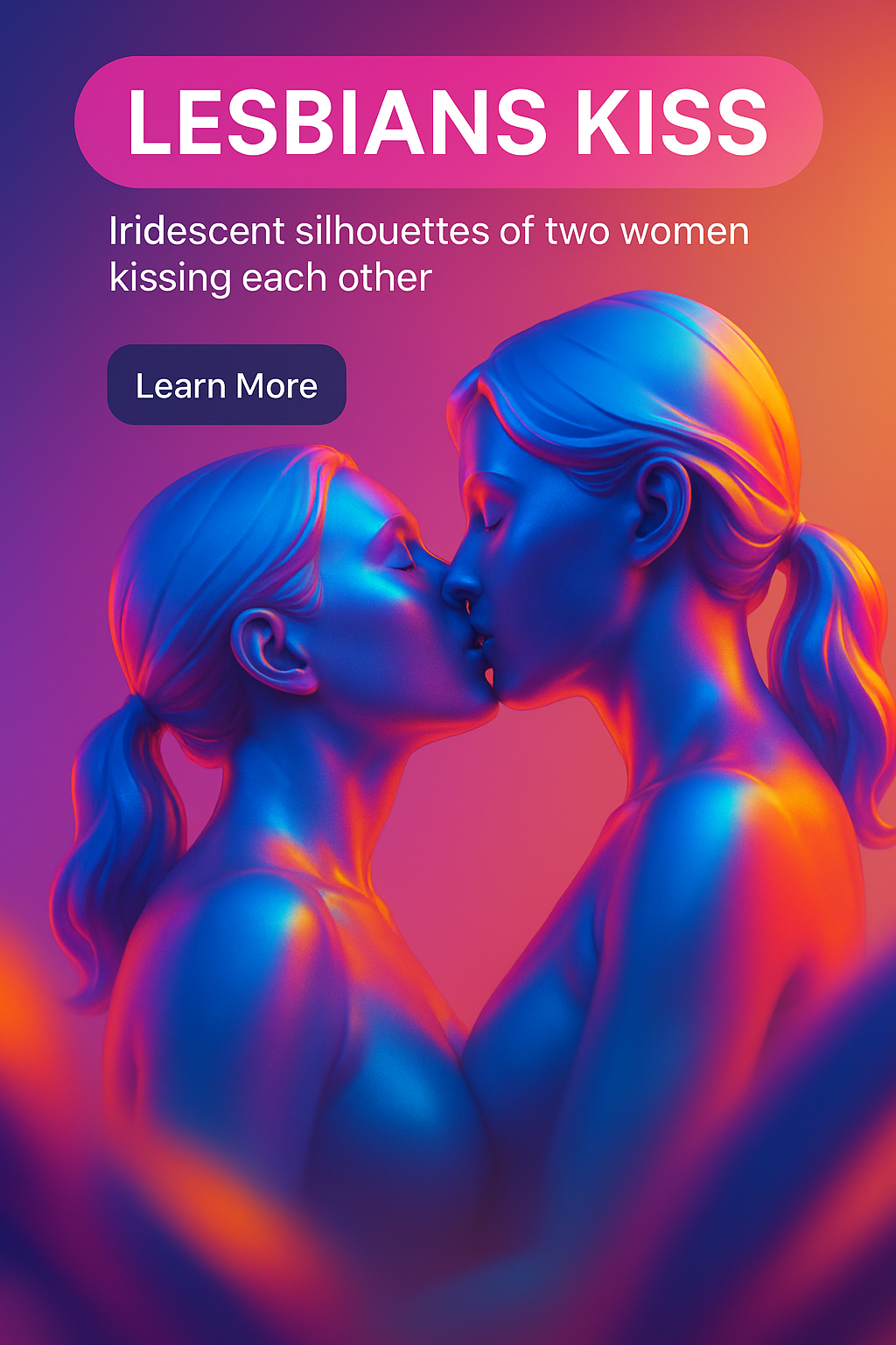 A vibrant digital illustration showcasing the silhouettes of two women kissing, featuring iridescent colors and a modern design. Ideal for LGBTQ+ awareness and celebration.