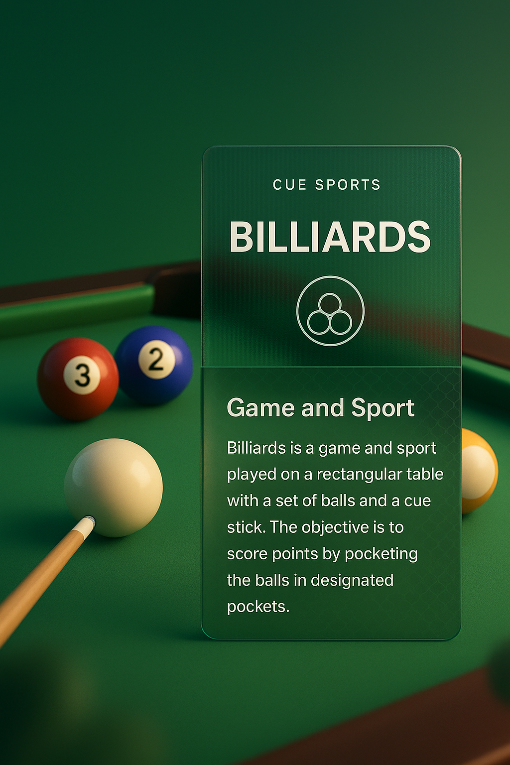 Elegant Snooker Design with 3D Elements and Text Integration