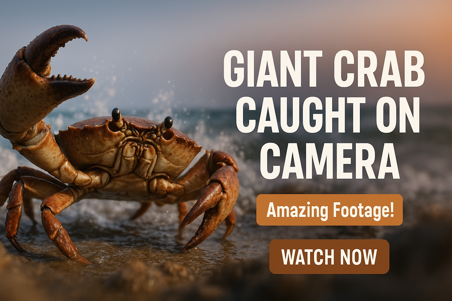 Dynamic wildlife photography showcasing a giant crab caught on camera, designed for engaging social media or online video promotions. The image captures natural beauty and action.