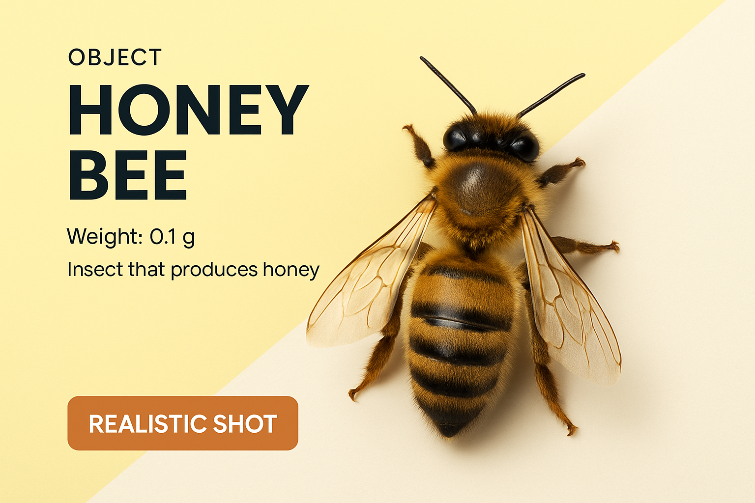 /Collection: /by davooda/Type: PNG/A clean and modern advertisement featuring a realistic top view of a honey bee. The background is divided into light contrasting colors, enhancing the bee's visibility and appeal.