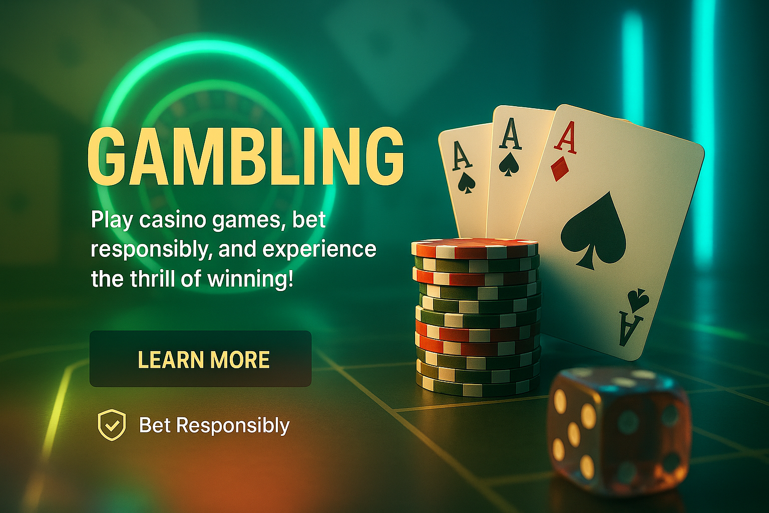 Casino Promotion Banner Featuring Gambling Theme and Game Elements