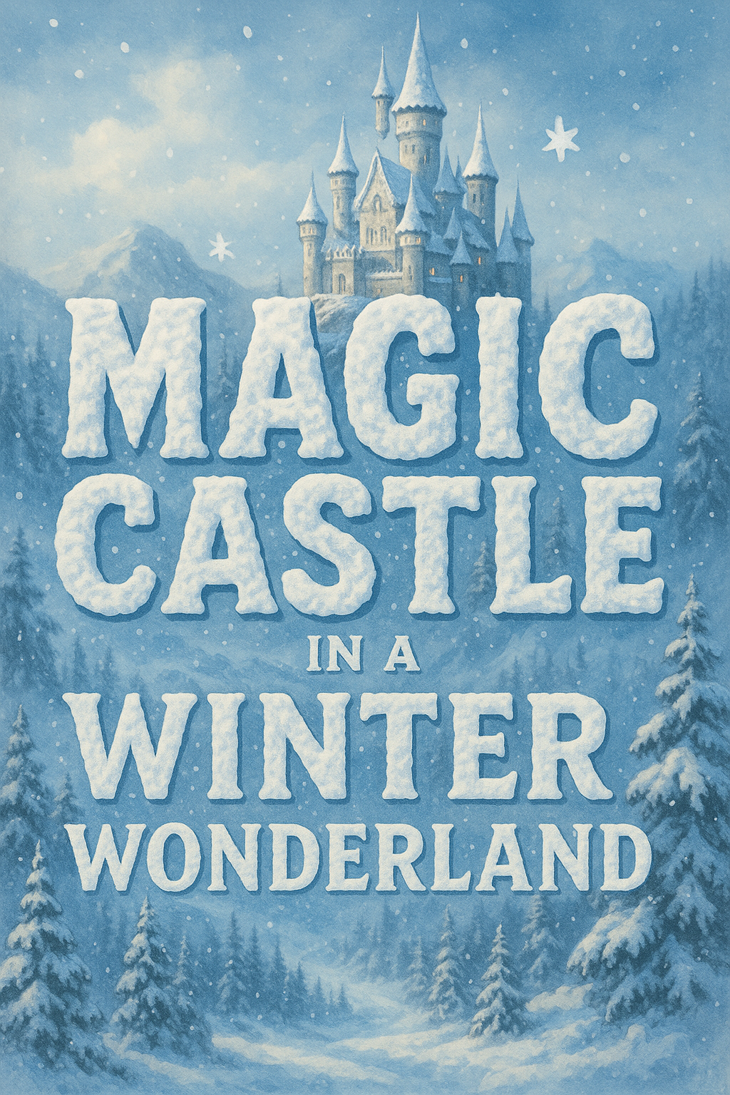 Whimsical Winter Wonderland Illustration Featuring a Magic Castle
