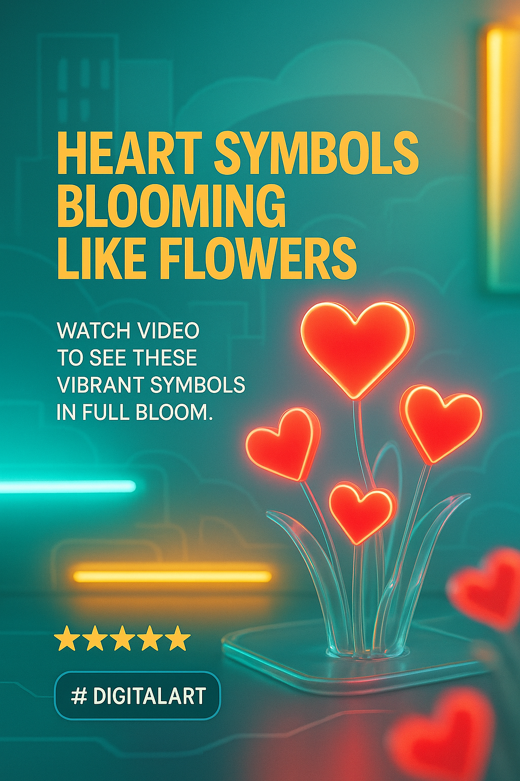 /Collection: /by davooda/Type: PNG/Vibrant digital artwork depicting heart symbols blooming like flowers, featuring a modern design with neon colors. Ideal for social media promotions or video content.