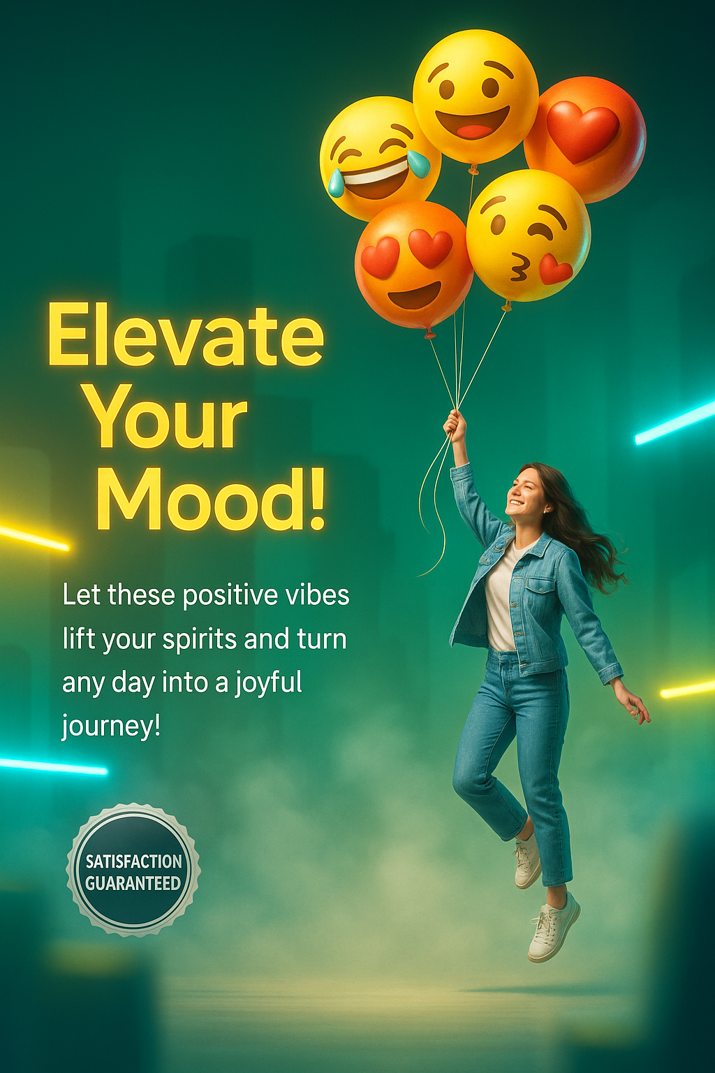 Cheerful Mood Elevation Graphic with Emoji Balloons