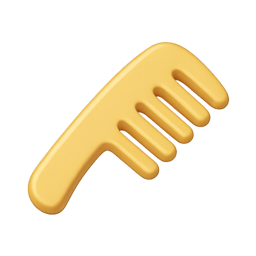 Stylized 3D yellow hair comb icon featuring smooth curves, ideal for beauty or personal care applications in digital design.