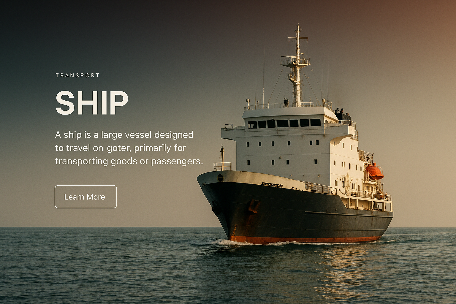 /Collection: /by davooda/Type: PNG/A realistic depiction of a large ship navigating calm waters. The design includes a gradient background, a clear header, and a concise description with a call-to-action button.