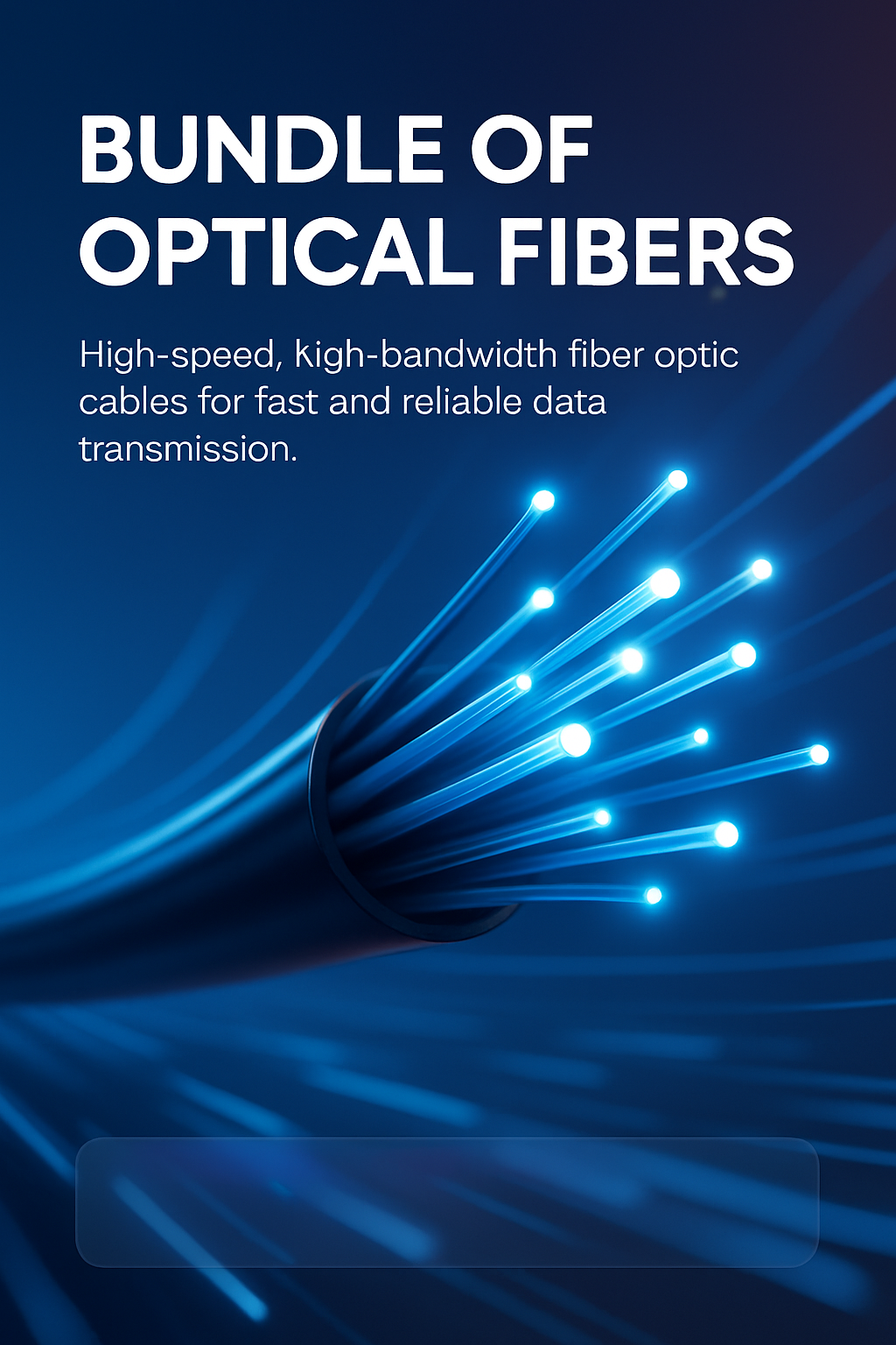 /Collection: /by davooda/Type: PNG/This image features a visually striking representation of a bundle of optical fibers, showcasing their glowing ends. It serves as a promotional graphic for high-speed data transmission technology.