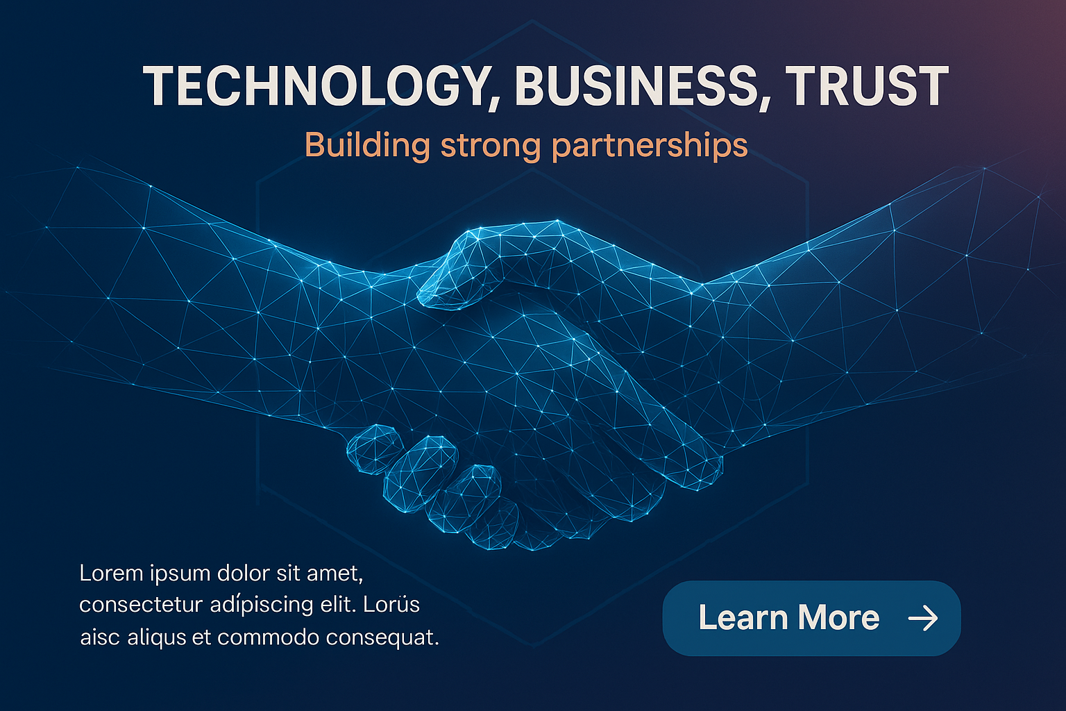 /Collection: /by davooda/Type: PNG/A digital illustration featuring two wireframe hands in a glowing handshake, symbolizing trust in technology and business partnerships. The background has a gradient, enhancing the professional aesthetic.