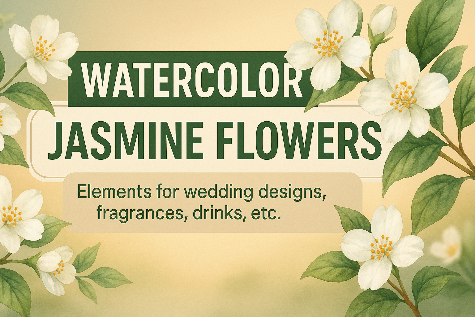 /Collection: /by davooda/Type: PNG/Beautiful watercolor illustration featuring jasmine flowers, ideal for wedding designs, branding, and product packaging. Soft colors and floral elements create an inviting atmosphere.