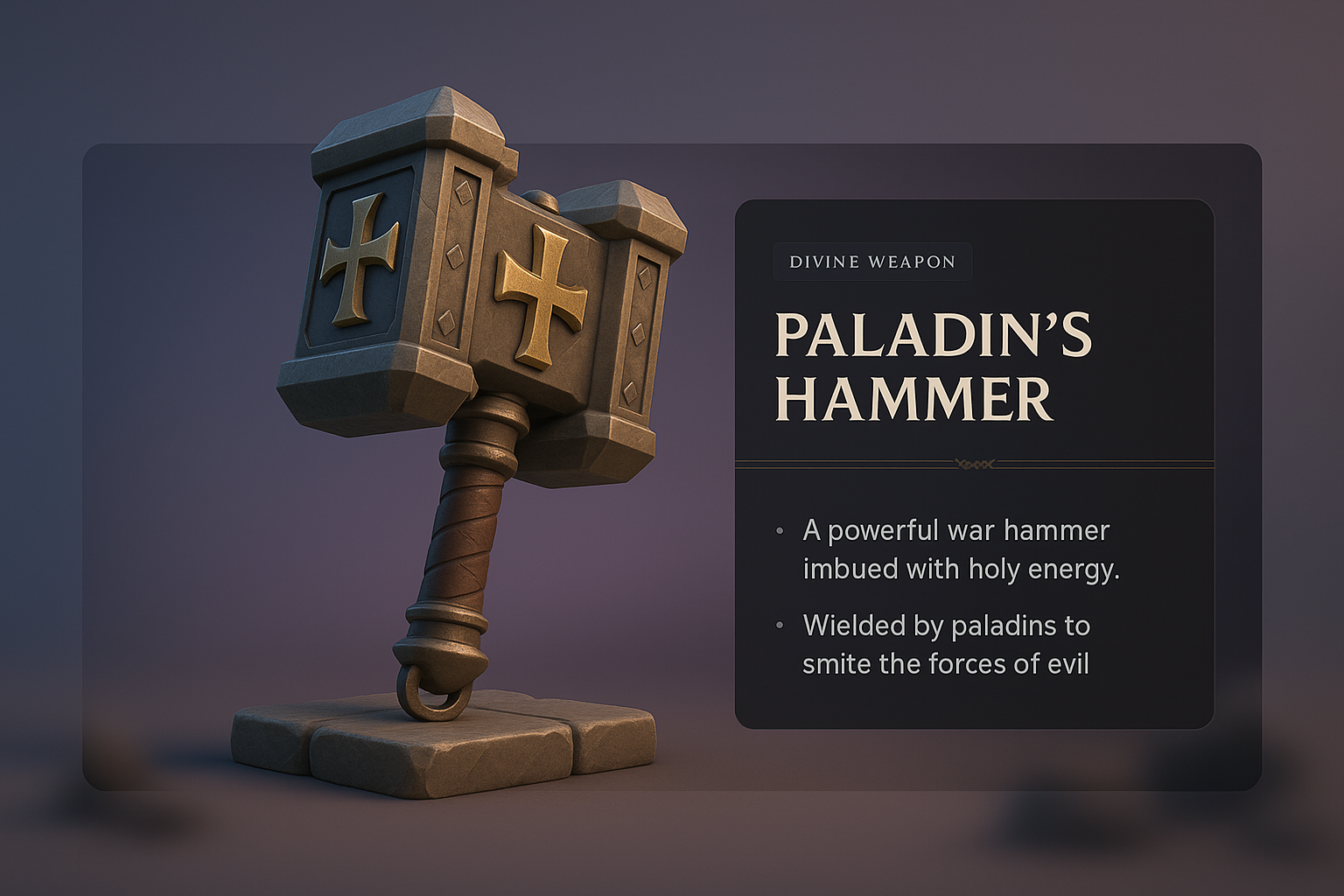 3D Illustration of a Paladin's Hammer with Engaging Design Elements